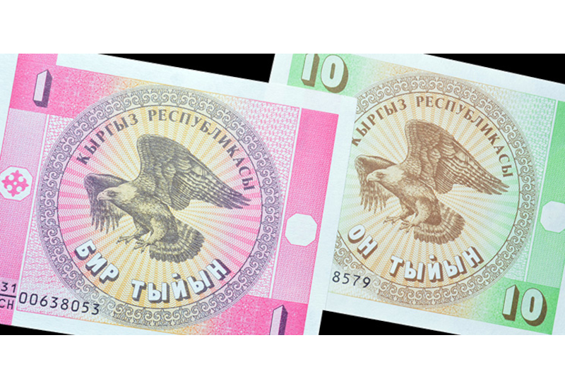 El 1997, el Kirguizstan va llançar una sèrie de bitllets d’1 a 50 tyiyn amb forma quadrada, també molt reclamats per la seva originalitat.
