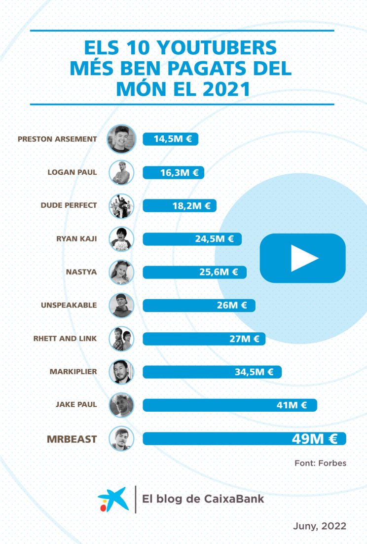 Infografia. Els 10 Youtubers més ben pagats del món el 2021