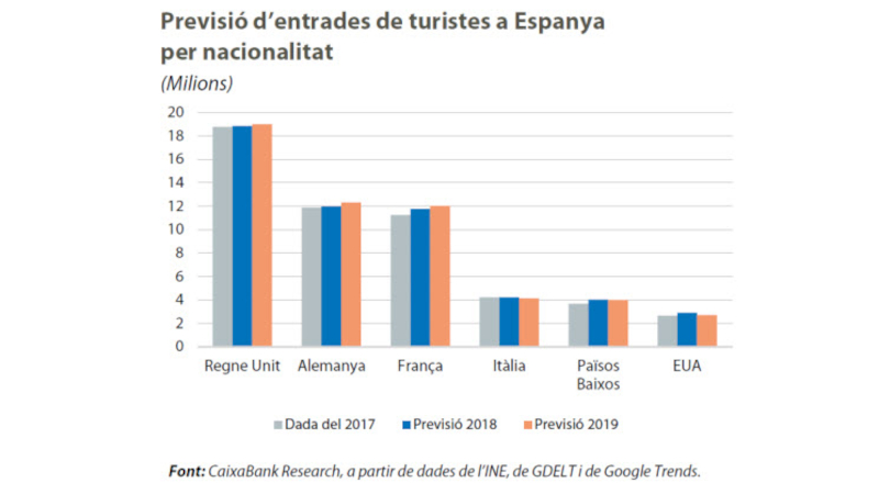 Les dades fins al juny de 2018 mostren que les cerques de Google sobre turisme a Espanya han augmentat respecte a l'any anterior. Aquesta positiva evolució, juntament amb les bones perspectives de creixement econòmic dels principals països emissors, fa preveure que, el 2018, el turisme creixerà a un ritme anual del 3%, una xifra notable encara que inferior als excepcionals ritmes de creixement dels últims anys i en consonància amb el menor ritme de creixement del turisme a nivell mundial i de la reducció de l'anomenat “turisme prestat”.