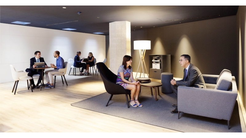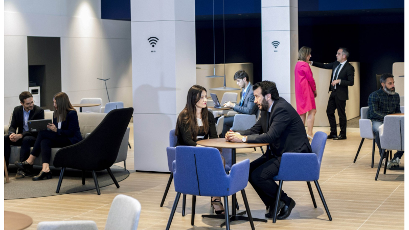 El client és qui tria on ser atés. Tota l’oficina aporta llocs còmodes i amplis on client i empleat poden tenir una trobada propera, de tu a tu. El personal, acompanyat sempre d'una tauleta tàctil, presta el servei als nostres clients.