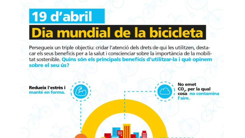 Tothom sap que hi ha dies mundials per a tot, fins i tot de vegades d'allò més inversemblants. Avui, 19 d'abril, és el torn de donar protagonisme al mitjà de transport de dues rodes, que, a més, és amic del medi ambient i amant de l'esport: la bicicleta.