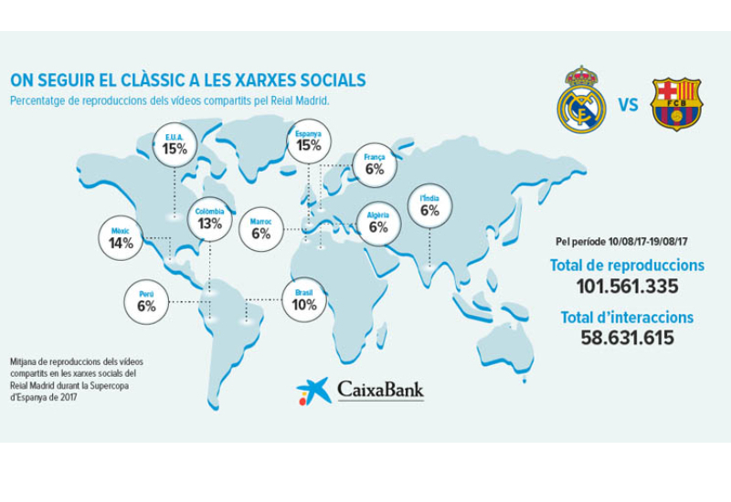 El Clàssic ja ha transcendit les fronteres d'Espanya per convertir-se en un partit d'interès internacional. Així s'explica com, durant l'enfrontament d'anada de l'esmentada Supercopa d'Espanya de 2017, els blancs aconseguissin a les seves xarxes 32 milions de reproduccions dels seus vídeos i 10 milions d'interaccions a tot el món.