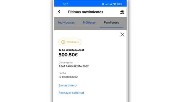 Alguns usuaris de Bizum estan rebent una sol·licitud d'enviament de diners suplantant l'Agència Tributària amb l'assumpte «AEAT PAGO RENTA 2022».