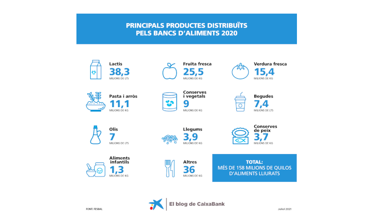 Per tal de continuar atenent les necessitats més bàsiques, Fundació ‘la Caixa’ i CaixaBank van posar en marxa a l'abril, juntament amb FESBAL, la segona edició de la campanya #CapLlarSenseAliments, amb la qual han recaptat 2,2 milions d'euros i han aconseguit 2.386 tones d'aliments bàsics, que es distribuiran entre els 54 bancs d'aliments associats a FESBAL.