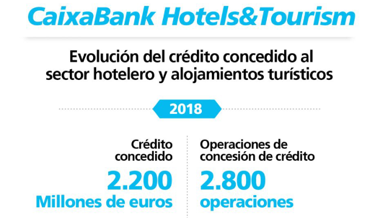 Només el 2018, CaixaBank Hotels&Tourism va concedir un total de 2.200 milions d'euros en crèdit al sector hoteler i d'altres allotjaments turístics, a través d'un total de 2.800 operacions. En aquest sentit, va augmentar el crèdit concedit un 46% respecte a 2017, quan va sumar 1.500 milions d'euros. Amb aquests resultats, l'entitat ha superat àmpliament l'objectiu establert a principis de 2018 de créixer el 20%.