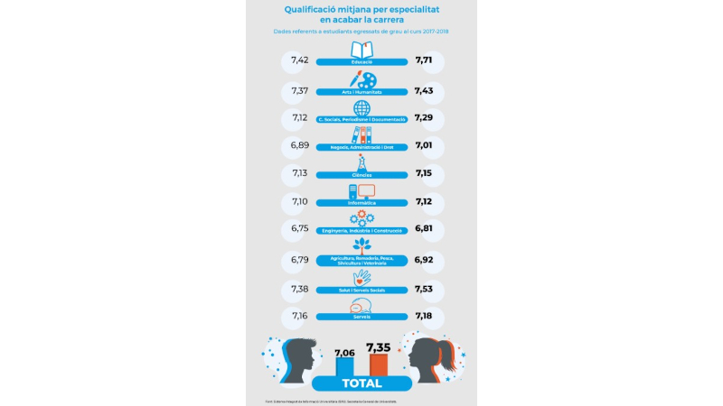 Infografia. Qualificació mitjana per especialitat en acabar la carrera