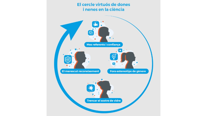 Aquí se situa precisament el punt de partida del cercle viciós que limita el desenvolupament de les dones en la ciència i eixampla la bretxa de gènere en aquest camp. Comença amb la manca de referents femenins i de confiança en la infància per retroalimentar-se durant la resta de les etapes vitals. Ho fa a base d'ingredients com ara els biaixos de gènere en la tria d'estudis, els sostres de vidre en l'edat adulta i l'escàs reconeixement que es concedeix a les dones científiques amb experiència.Actuar sobre cadascuna d'aquestes etapes és la clau per revertir la situació i convertir aquest cercle viciós en un de virtuós. Es tracta d'aplanar el camí perquè aquestes nenes que se senten atretes per la ciència, si volen, puguin apuntar al mateix Premi Nobel i alhora esdevenir referents per a unes altres nenes que les puguin seguir en el futur. Al cap i a la fi, la societat no es pot permetre renunciar a la meitat del seu talent.