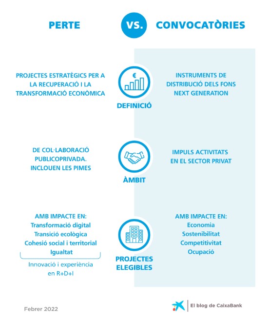 Des que Brussel·les va aprovar el Pla de recuperació, transformació i resiliència (PRTR) d’Espanya, a través del qual es canalitzaran els fons europeus Next Generation, s’ha parlat molt de les convocatòries que es publicaran per als qui pretenguin optar a aquest finançament i dels projectes estratègics per a la recuperació i la transformació econòmica (PERTE) que constituiran el pla.