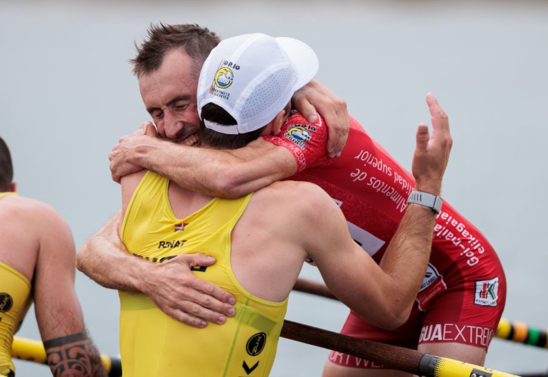 “M’agrada que es denomini atletes a les remeres i remers”, apunta Borja Rodrigo, president de l’ACT des del 2017, i que és un dels primers en arribar a les immediacions de la zona d’embarcament a Castro Urdiales. “Aquests atletes, que la gran majoria no es dediquen al rem de manera professional, tenen una exigència pel que fa a la preparació equiparable a qualsevol esportista d’elit”, explica Rodrigo mentre saluda un dels equips que en qüestió de minuts embarcarà en la seva trainera. En aquesta preparació destaquen els sis entrenaments setmanals durant 11 mesos a l’any als quals se sotmeten. Entrenaments que impliquen sortir a remar al mar amb pluja, fred, calor, vent… I tot això per a què? “Jo diria que no només competeixen per una bandera, competeixen per alguna cosa molt més profunda: la història del seu municipi i de la seva gent”, sentencia.