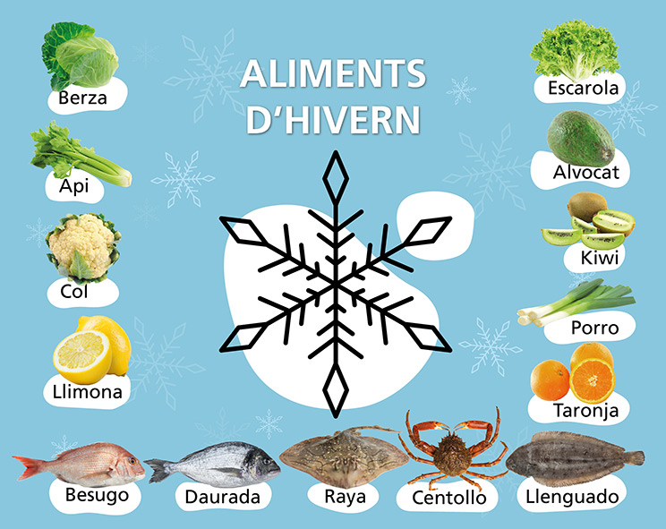 L'hivern és una temporada en què brillen diferents espècies de peixos i mariscos, com la rajada, el besuc, el llenguado, l'orada o la cranca.