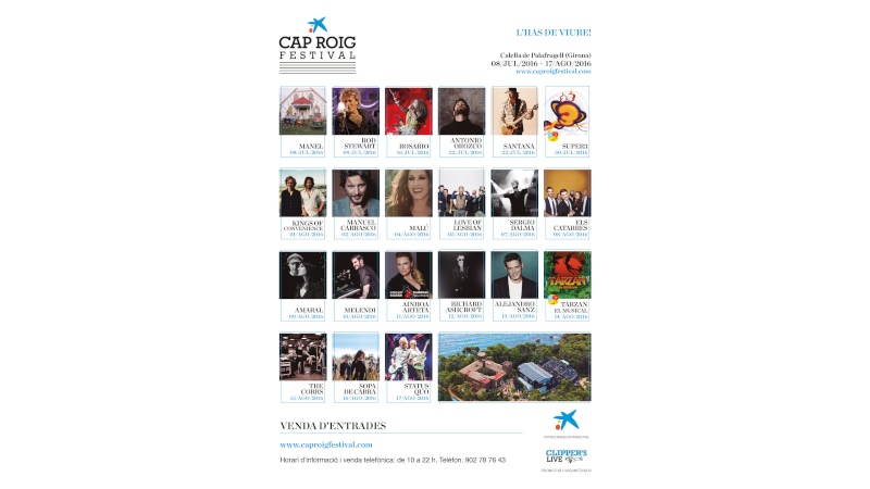 Rod Stewart pujarà a l'escenari de Cap Roig el cap de setmana de la inauguració per presentar el seu tour "From Gasoline Alley to Another Country Hits 2016". Per la seva banda, la llegendària banda de rock Status Quo s'encarregarà de clausurar aquesta nova edició.