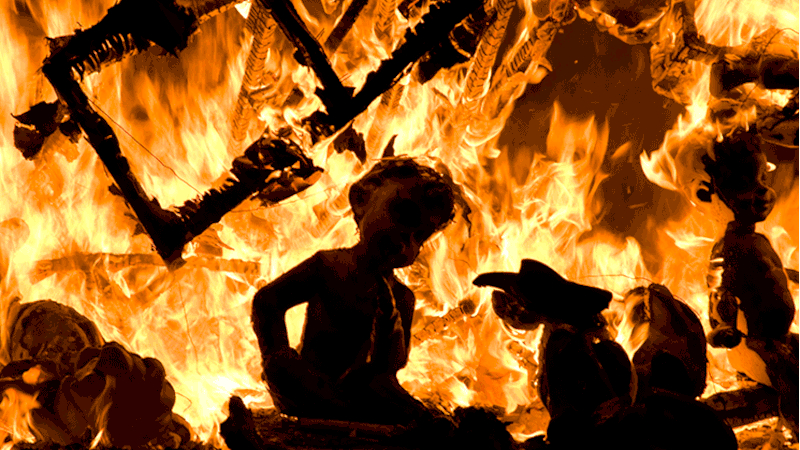 Les Falles són una mostra perfecta d'aquest poder d'atracció que exerceix el foc. Una de les festes espanyoles més conegudes, al costat de la Setmana Santa i dels Sanfermines, va tenir el seu origen en una tradició de fusters de València. Aquests artesans, abans del dia del seu patró (Sant Josep), cremaven al davant dels tallers els trastos vells i altres estris de fusta —que feien servir per il·luminar-se a l'hivern— per donar la benvinguda a la primavera.