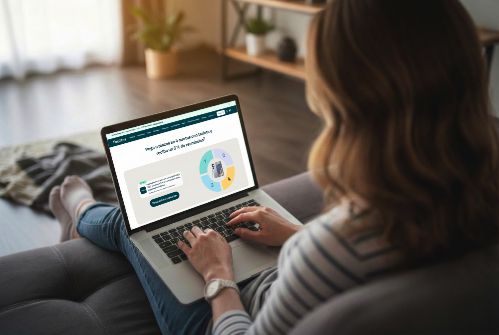 Una persona consulta en la web de Facilitea la nueva opción de pago en 4 plazos sin intereses.