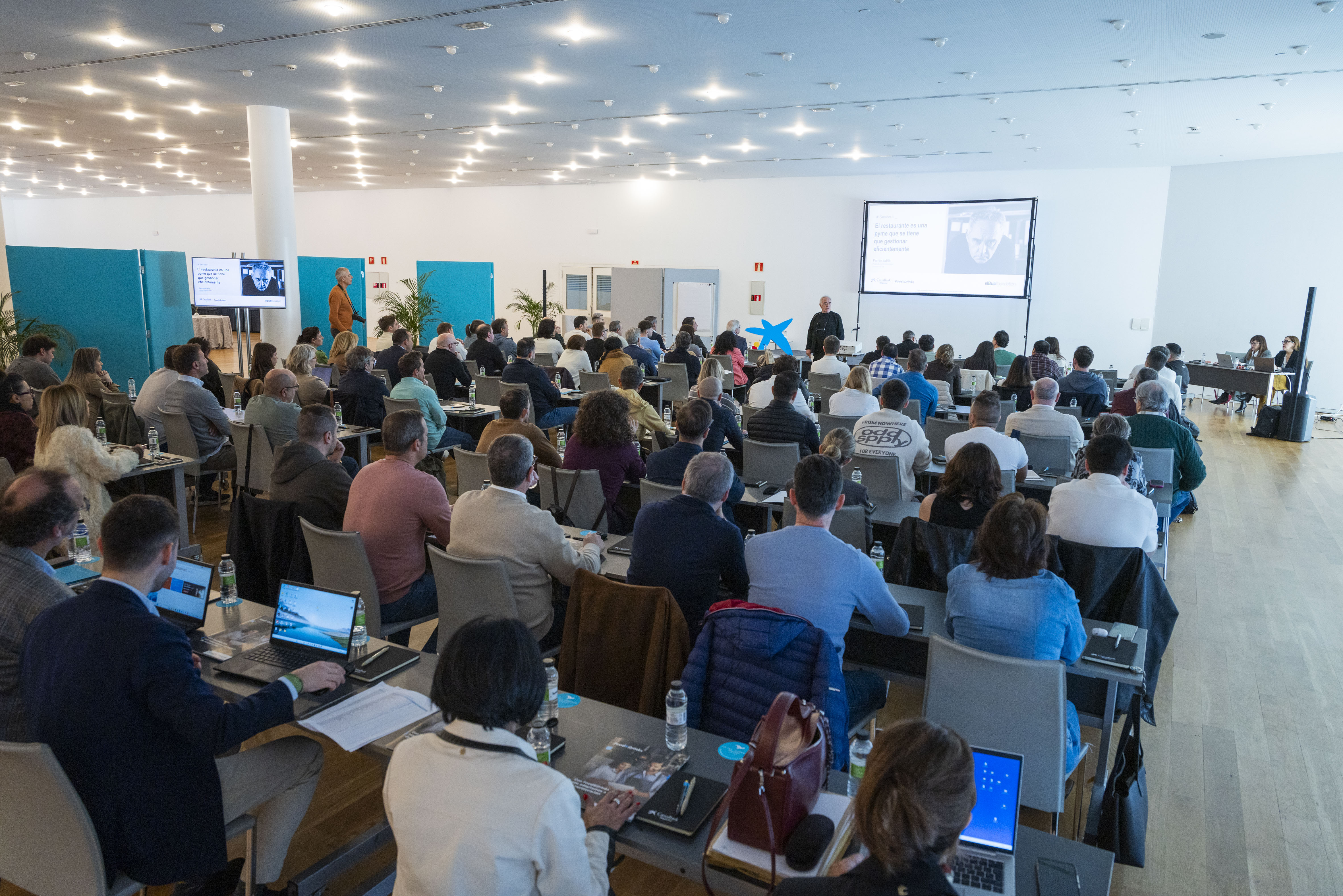 Durante su intervención, Ferran Adrià, expuso su punto de vista sobre cómo gestionar un negocio de restauración y cómo adaptarse a la evolución del sector. Adrià señaló que "es fundamental que los establecimientos trabajen con un plan de negocio y un presupuesto para velar por su solvencia, tal y como hacen las grandes empresas, y apeló a la importancia de cambiar de actitud y entender que la educación empresarial y financiera es vital". El chef y empresario también celebró que desde CaixaBank se dé soporte y asesoría al sector en la gestión de los negocios de restauración.