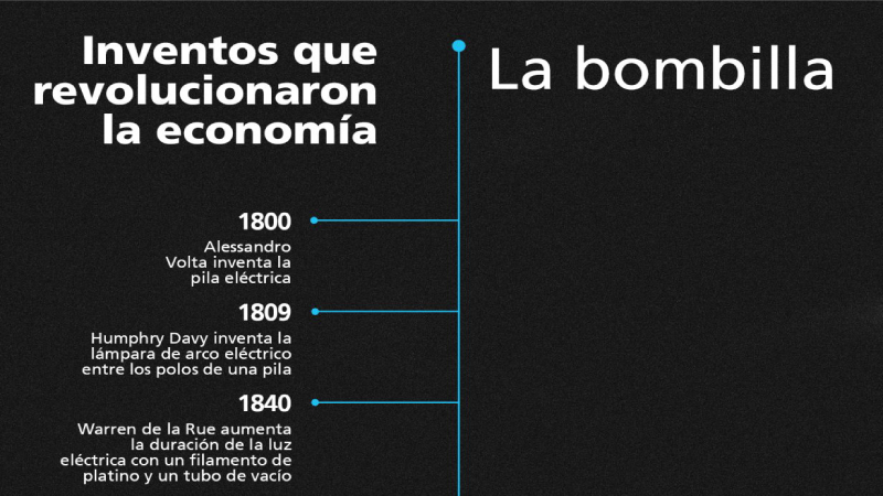 Ochenta años antes, Alessandro Volta había presentado la primera batería capaz de producir corriente eléctrica de manera sostenida. Poco después, en 1809, el científico británico Humphry Davy colocó una tira de carbón entre sus dos polos. Su objetivo: que la corriente eléctrica calentara la tira hasta ponerla incandescente para generar luz.