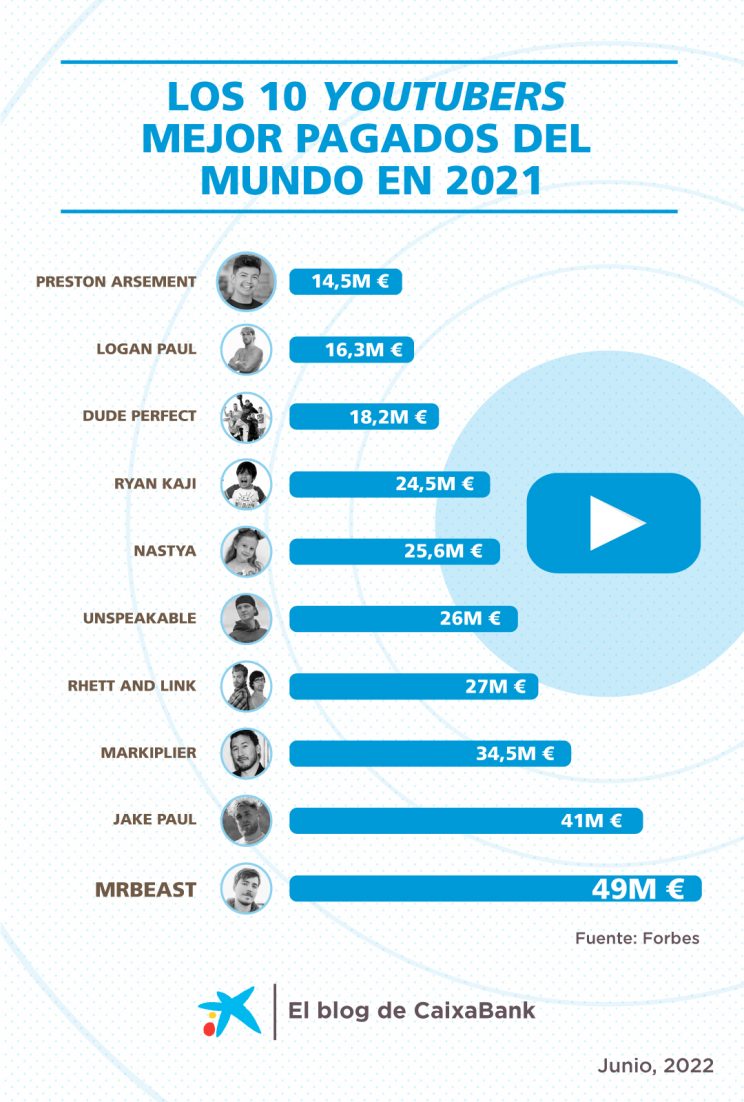 Infografía. Los 10 Youtubers mejor pagados del mundo en 2021