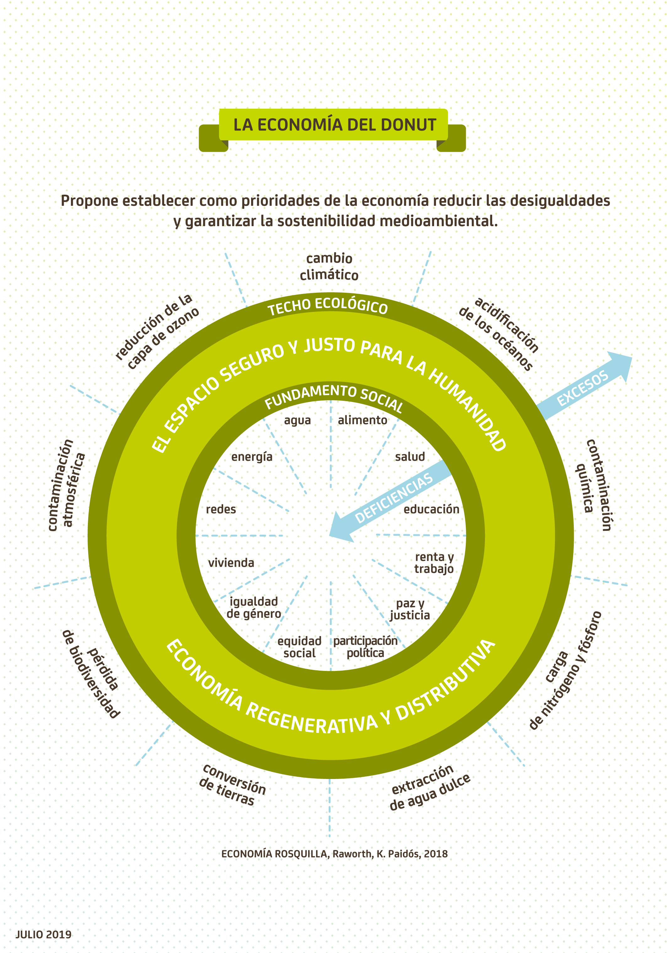 Al igual que la economía circular, de la que hablábamos hace unos meses, la teoría de Raworth pone el foco en la gestión de los recursos limitados del planeta y en las desigualdades sociales existentes. Lo hace de forma meticulosa repasando, uno a uno, los siete aspectos en los que la economía convencional ha provocado más problemas que los que ha solucionado.