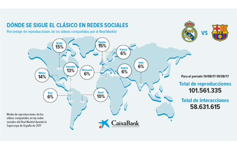 Que el fútbol es ya un fenómeno que no conoce de fronteras o culturas lo demuestra India, un país donde el deporte rey es cada vez más seguido y donde el Clásico supone uno de los eventos más seguidos en rede sociales. El país asiático generó en la Supercopa de 2017 una media del 7% de las reproducciones de los vídeos publicados por el Real Madrid. Un porcentaje grandísimo que hace unos años hubiera sido impensable.
