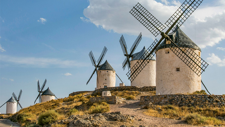 Partimos de una tierra de leyenda, donde don Alonso Quijano se batió en duelo con unos terribles gigantes. O eso creía. En Cerro Calderico, Consuegra (Toledo), encontramos un extraordinario conjunto de molinos que debieron ser muy parecidos a los que se enfrentó el personaje de la novela de Cervantes.