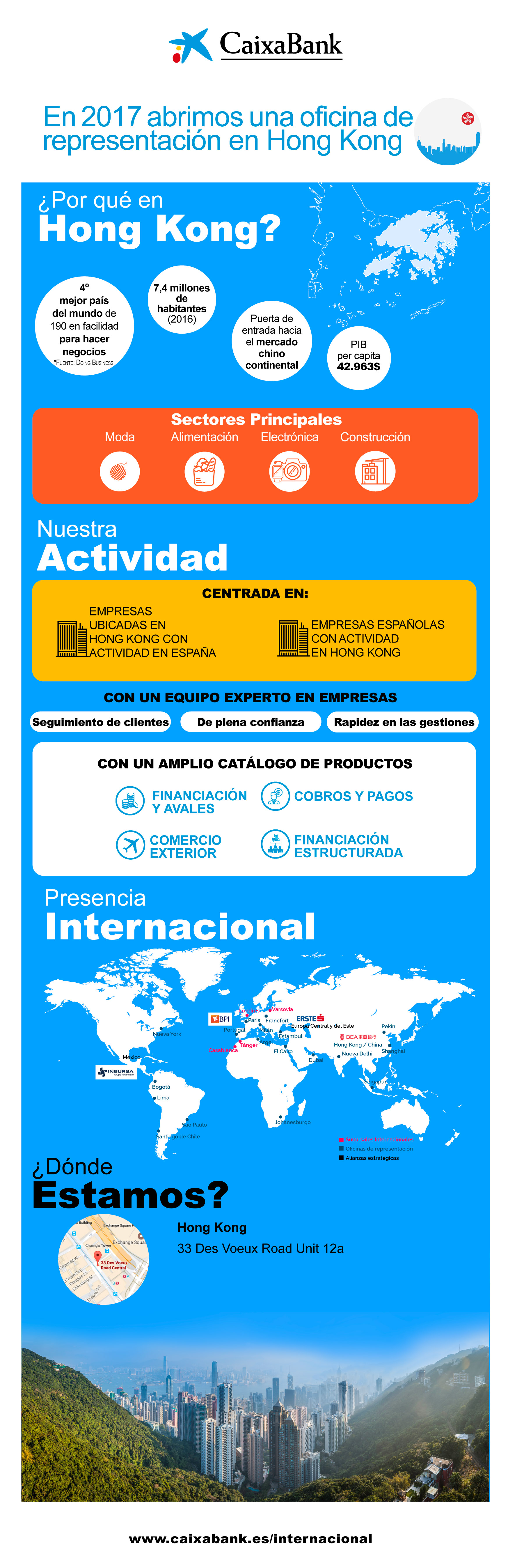 Como ocurre año tras año, Hong Kong se ha vuelto a posicionar como la economía más libre del mundo, según el Índice de Libertad Económica que elabora la Heritage Foundation. Este hecho, junto con que Hong Kong es, según Doing Business, el cuarto país del mundo de 190 en facilidades para hacer negocios, conforman dos de los grandes motivos por los que CaixaBank ha decidido abrir oficina de representación en la región.