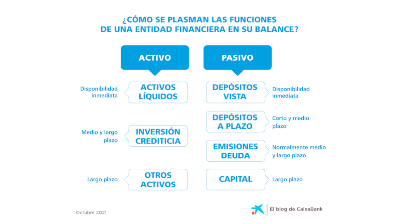 Estas funciones se plasman de la siguiente forma en el balance de un banco: