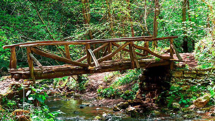 Alternando prados y bosques, a lo largo de nuestra caminata se extienden hayedos, robledales y encinares, además de acebos, arces, castaños, avellanos, chopos, almendros o abedules.
